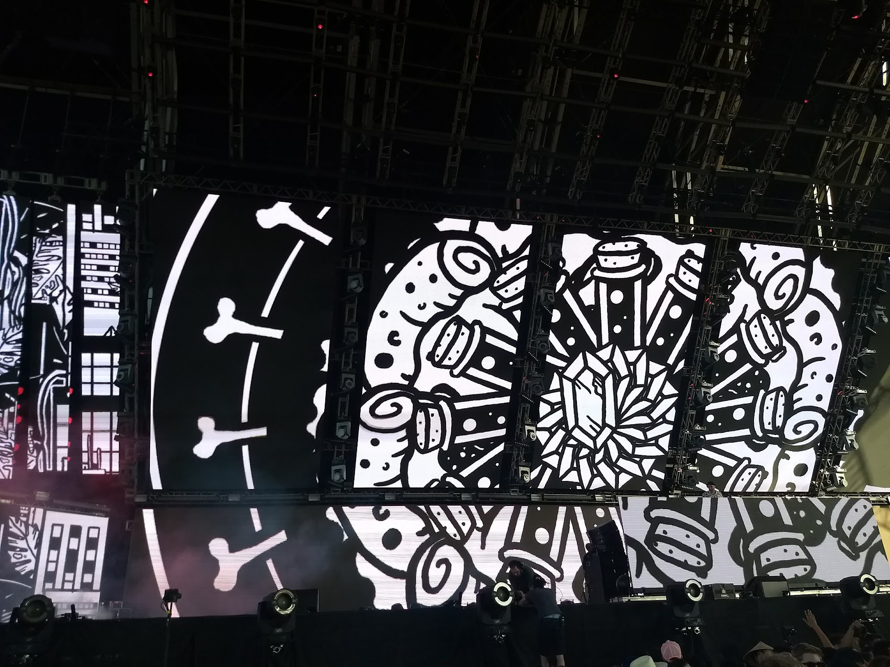 While working at Strangeloop Studios I was tasked with creating 2D Animated VJ loops for Justin Martin’s Coachella set at the Sahara Tent. We were given illustrations from the incredible Nico Salazar and used a wide variety of 2D animation techniques to bring them all to life. The stark black and white content with neon accents created a one-of-a-kind bold visual experience at the Sahara Tent.